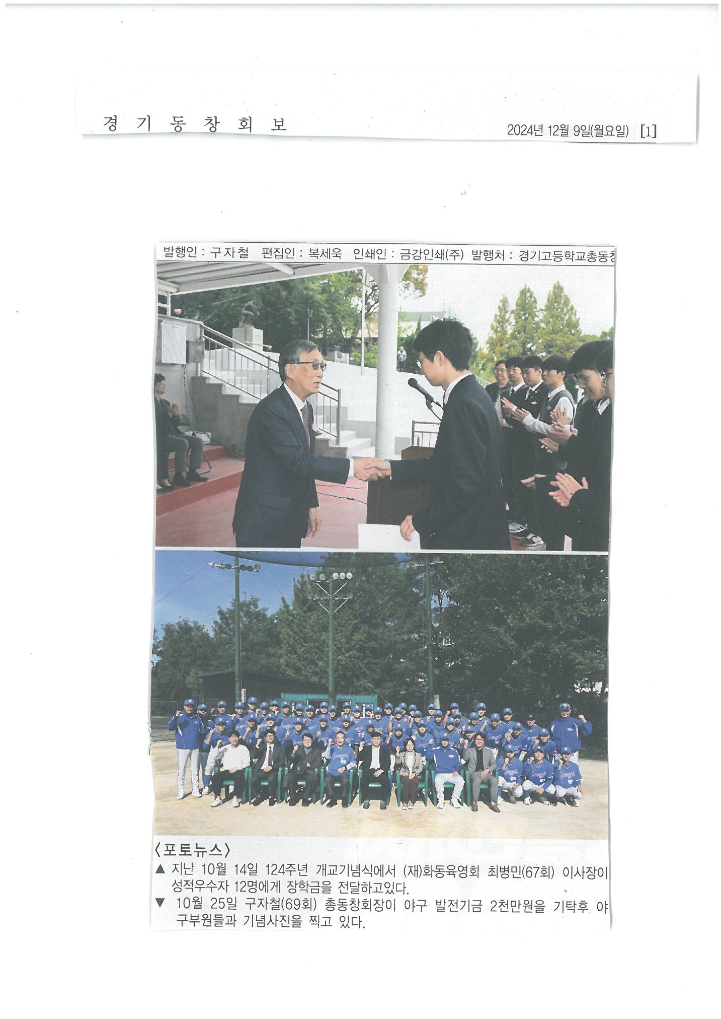 (상단사진) 개교기념식 2024년 10월 14일 경기고 대운동장