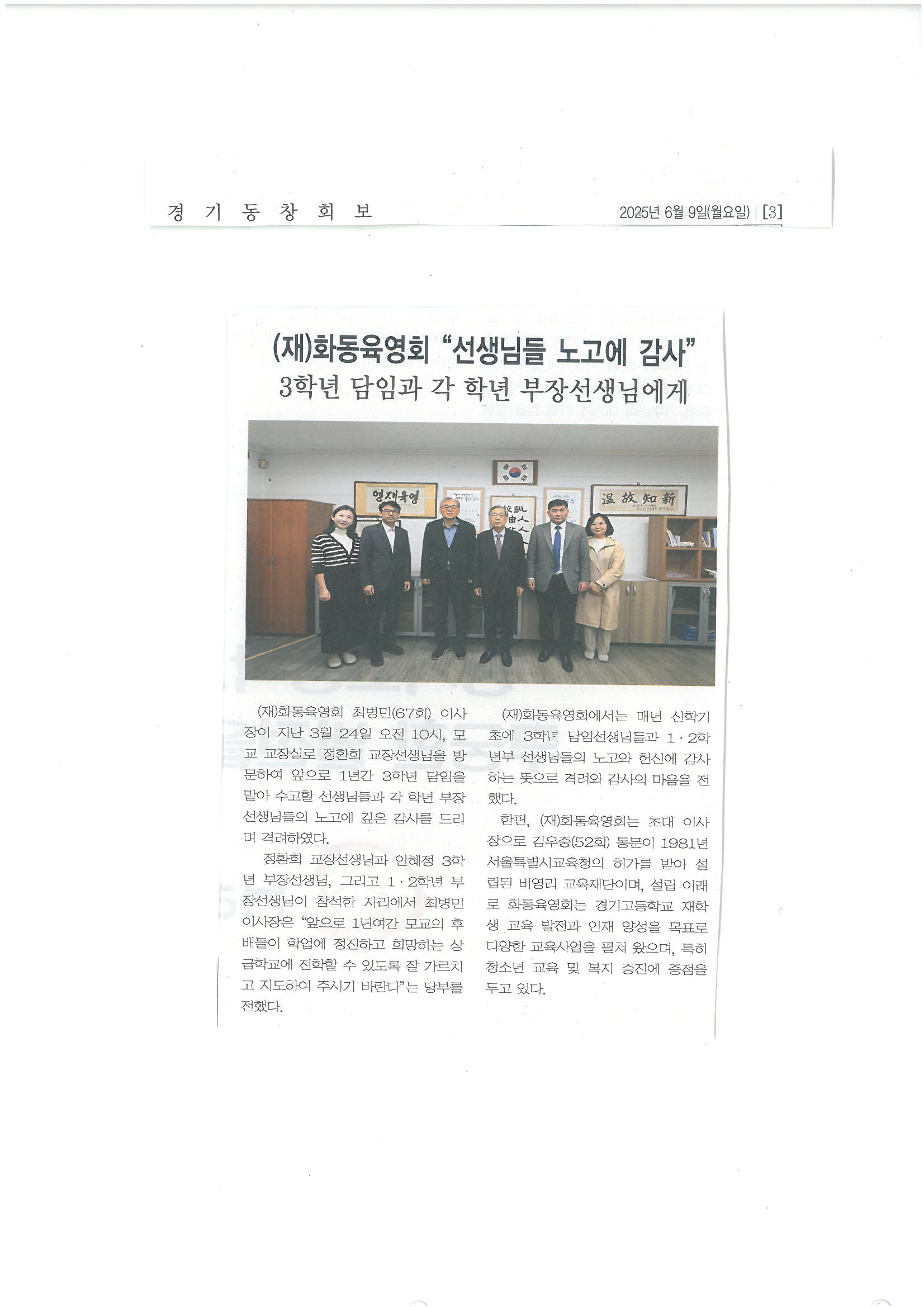 경기고 1, 2, 3 학년 교사 진학지도 지원금 지급